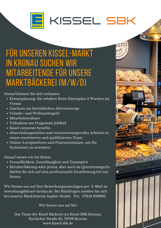 Bei Rückfragen melden Sie sich bei unserer Marktleiterin Sophie Neidel, Tel.: 07253 959900.