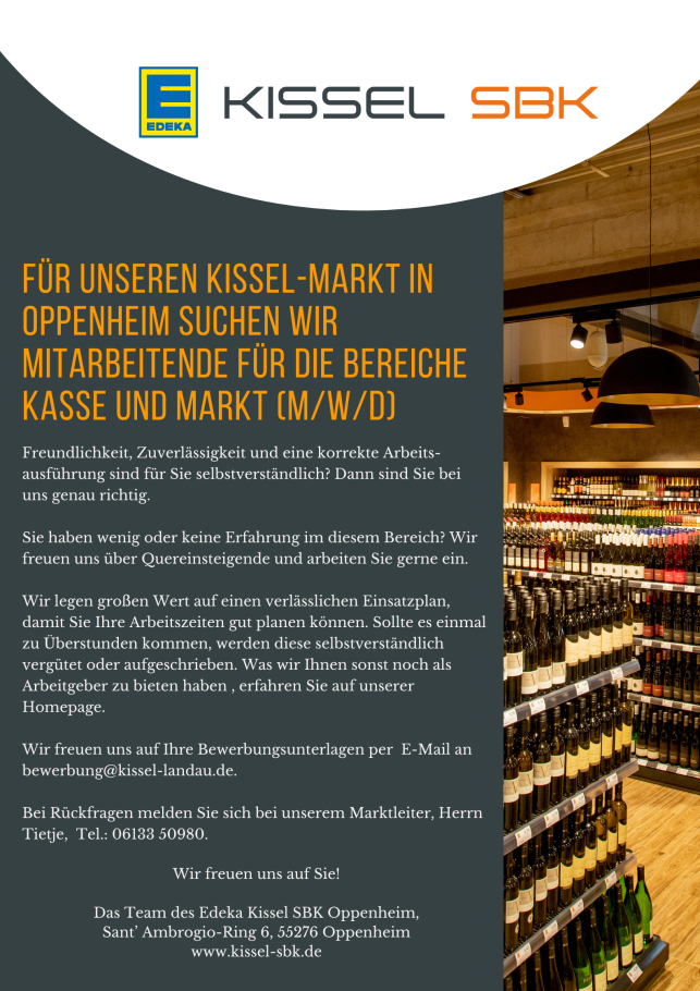 Für unseren Kissel-Markt in Oppenheim suchen wir